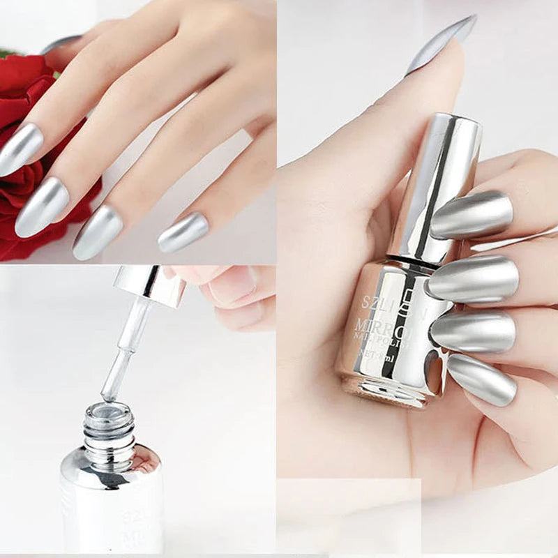 Shine bright with SZLION Metallic Nail Polish . This 8ml polish offers a brilliant, mirror-like finish with a glitter effect , ideal for bold, long-lasting manicures. Its waterproof formula ensures a vibrant metallic color that lasts, perfect for creative nail art in the salon or at home.